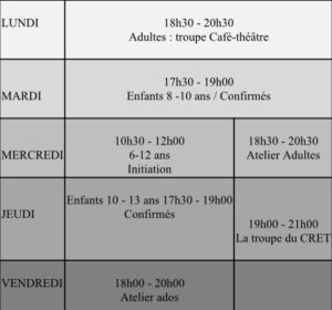 Tous les cours se déroulent dans la Salle des Mimosas, niveau -2